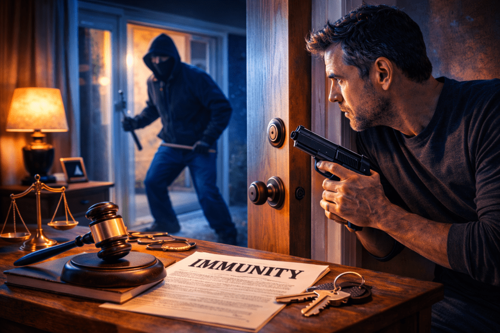 In this guide, we will explain how the law works, how it compares with other home defense laws, and what homeowners should know about their rights.